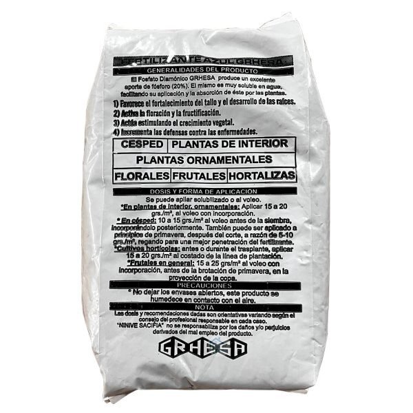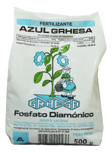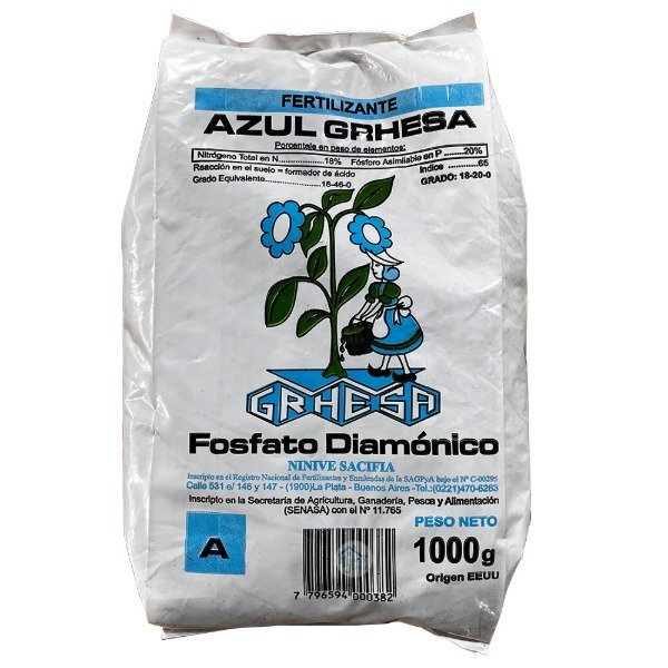 El Fosfato Diamónico Grhesa produce un excelente aporte de fosforo (20%). El mismo es muy soluble en agua facilitando su aplicación y la absorción de éste por las plantas.