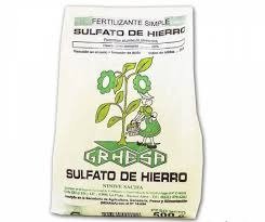 SULFATO DE HIERRO es un compuesto que corrige la carencia o deficiencia de hierro en el suelo la que se manifiesta en el vegetal por un marcado amarillamiento de sus hojas, conocido como «Clorosis».