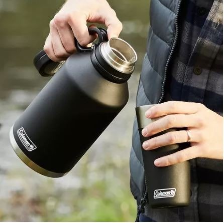 » El Termo Coleman Growler esta construido en acero inoxidable 18/8 de doble pared, con aislamiento al vacío, lo que mantiene el agua caliente por hasta 41 horas, y fría por hasta 76 horas