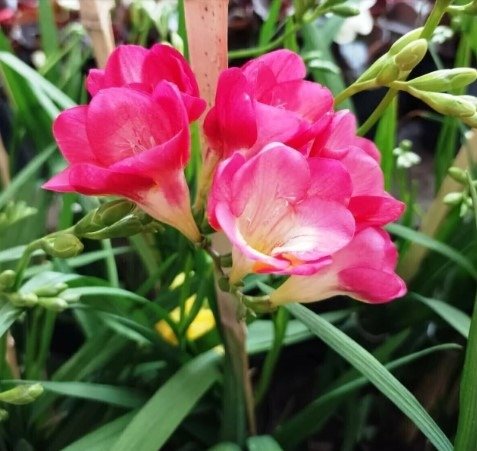 Freesia es un género nativo del este y sur de África, siendo Freesia refracta la primera especie descrita en 1866, originaria de Sudáfrica.